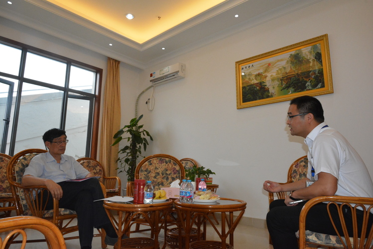 ▲ 张智强组长访谈严健军董事长、陈晓斌校长