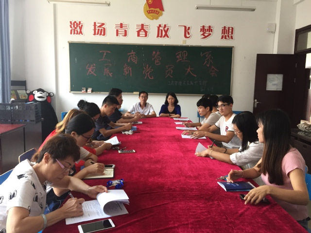 2017年9月19日星期二中午,工商管理系直属党支部在2号楼311教室召开党员发展大会。会议由直属党支部副书记江雪标老师主持,全系党员老师出席了本次会议。