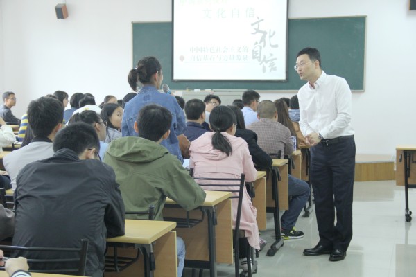 在党的十九大胜利召开之际,为弘扬中华优秀传统文化,推动中华优秀传统文化创造性转化,全面融入课程思政,以优秀文化涵养青年学生。我校第一门“中国系列”课程《文化自信》于10月20日开讲,校党委书记陈俊傲教授做了首场授课。