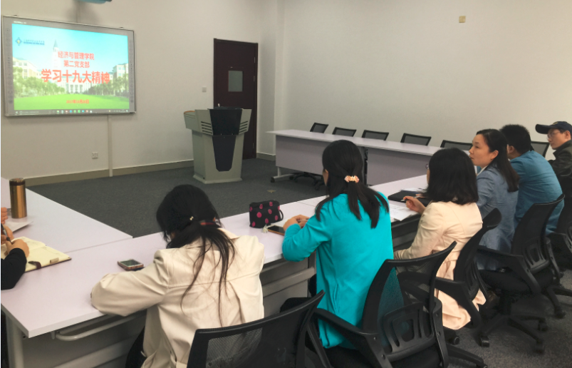 为了更好地学习贯彻十九大精神,10月20日中午11:35,经济与管理学院第二党支部在3号楼206会议室召开十九大专题组织生活会。会议由经济与管理学院第二党支部书记杨慧老师主持。