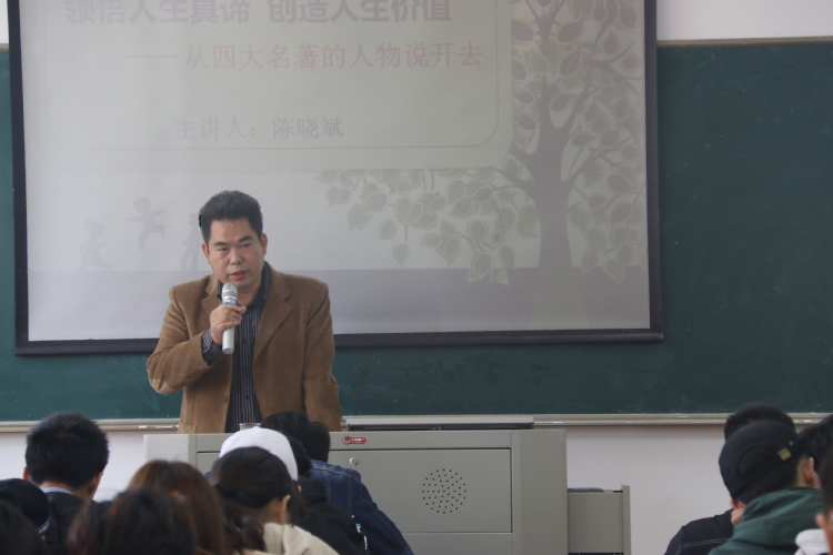 11月1日下午,校长陈晓斌教授为2017级学生讲授了一堂别开生面的《领悟人生真谛,创造人生价值——从四大名著的人物说开去》思修课,在学生中引起热烈反响。