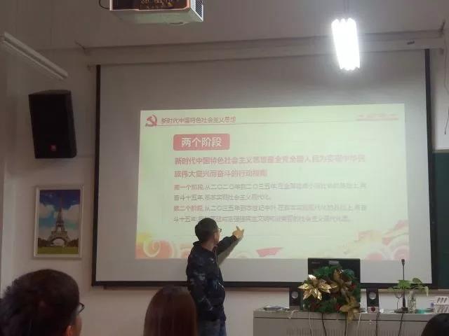 最后,江雪标老师配合PPT演示对十九大报告进行了解读。于10月18日召开的十九大翻开了中国共产党历史征程的新篇章,这是中国之福,也是世界之福。江老师也强调作为一名入党积极分子,要时刻了解最新时政资讯,从思想和行为两个方面严格要求自己,严于律己,为党贡献,争取早日加入党组织。