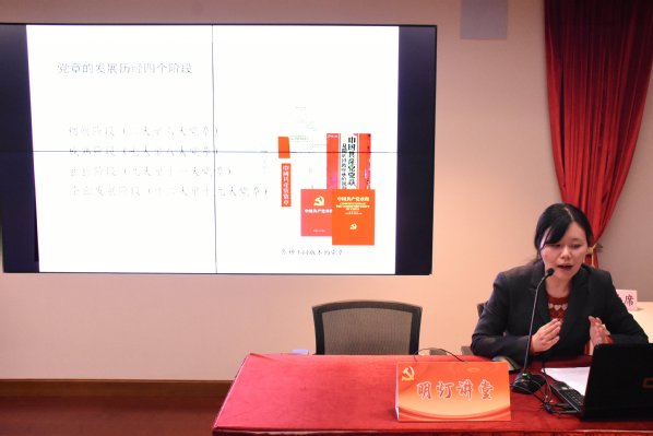 在纪念馆多功能厅,“明灯讲堂”思政专题课开讲。二大会址纪念馆研究室负责人倪娜老师以“中国共产党党章历程”为题进行了现场授课。她谈到,党章的发展历经了初创阶段、成熟阶段、曲折阶段和全面发展阶段。一部部党章浓缩了中国共产党九十多年来波澜壮阔的辉煌历程,也见证了千千万万共产党员为党的事业前赴后继、英勇无畏的前行之路。“一部党章的历史,就是一部党的历史。”她通过一个个鲜活的历史人物和故事,用党章背后的历史细节为我校师生上了一堂生动的关于党章发展史的党课。