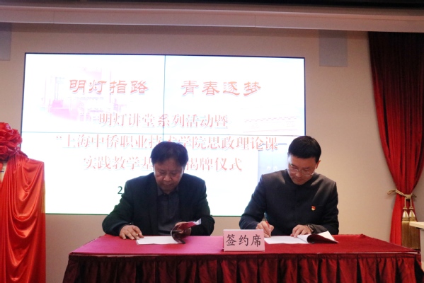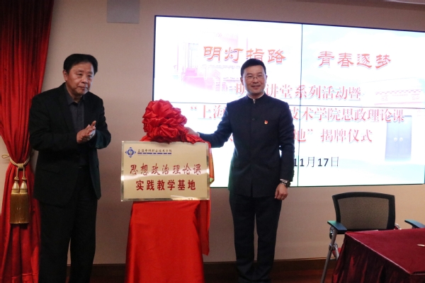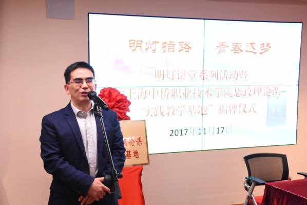 为深入学习贯彻党的十九大精神,全面领会新修订的党章新思想,推动十九大精神进课堂,引领师生以昂扬的政治面貌走进新时代。在解放日报社、市民办高校党工委、上海教育新闻宣传中心的支持下,上海中侨职业技术学院联合中共二大会址纪念馆于11月17日共同举办“明灯讲堂”思政专题讲坛活动暨“上海中侨职业技术学院思想政治理论课实践教学基地”揭牌仪式。