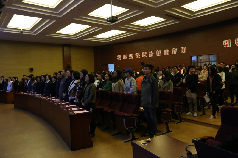 为推动“两学一做”学习教育深入扎实开展,引导全体党员和入党积极分子立足岗位做贡献,充分发挥先锋模范作用,根据《关于认真学习宣传贯彻党的十九大精神的工作方案》要求,11月28日15:45,我院于报告厅开展“亮身份做承诺树形象当先锋”活动,参加本次活动的有第一支部全体党员、学生党员以及入党积极分子,此次活动由党总支副书记郭骏主持。