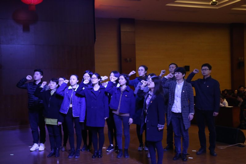 由第一党支部宣传委员曹小玉领誓:我志愿加入中国共产党,拥护党的纲领,遵守党的章程,履行党员义务,执行党的决定,严守党的纪律,保守党的秘密,对党忠诚,积极工作,为共产主义奋斗终身,随时准备为党和人民牺牲一切,永不叛党。
