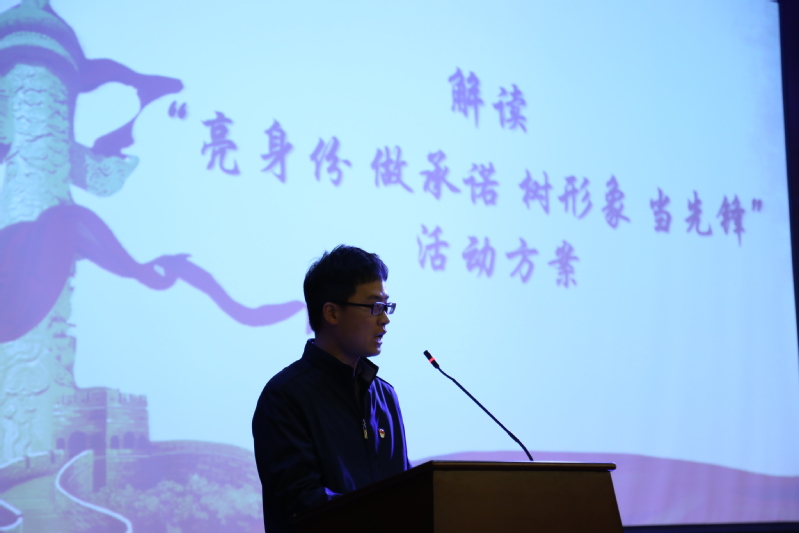第二项:我院党总支书记石成玉解读“亮身份作承诺树形象当先锋”活动方案。