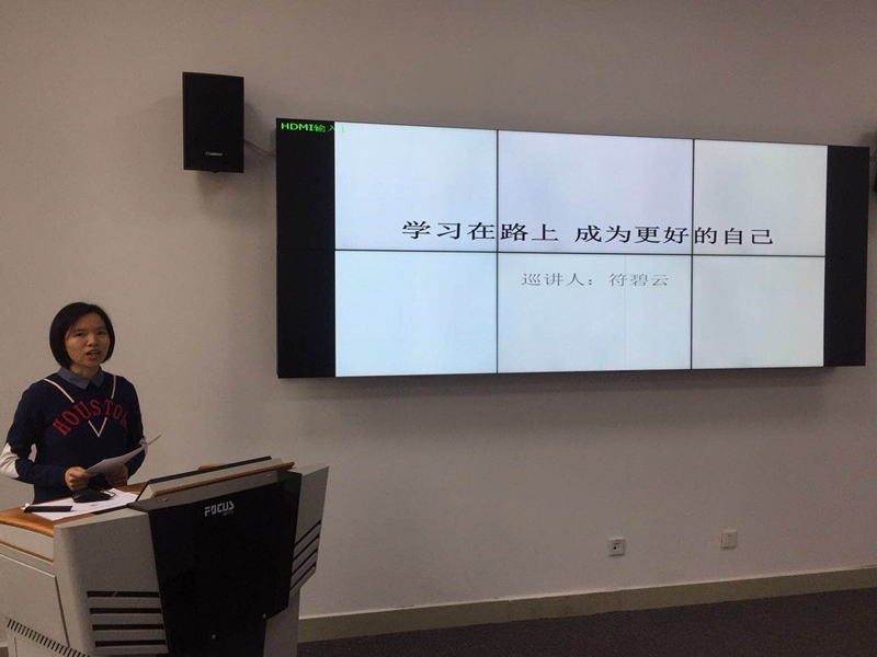 “作为一名青春的筑梦人,深知在学习宣传贯彻十九大精神的过程中,需要不断地充实自我,和学生一道进入新时代,‘学习在路上,成就更好的自己’,开启新征程,续写新篇章。”符碧云老师说,“实现”两个一百年“奋斗目标,你们青年学子将全程参与,你们就是中坚力量”!