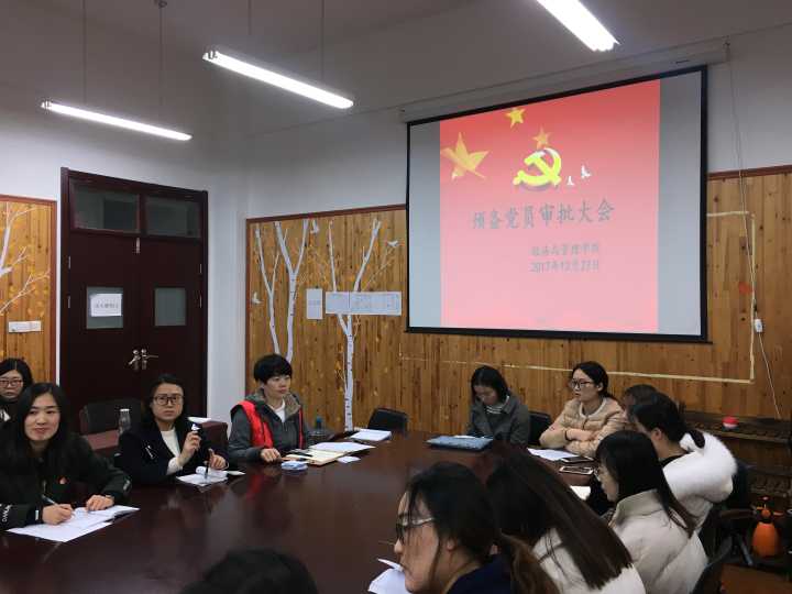 12月27日下午18:00,经济与管理学院在3号楼313教室召开预备党员审批大会。经管学院党总支书记石成玉以及第一党支部全体党员老师、预备党员、发展对象参与了此次会议。大会由第一党支部书记兼党总支宣传委员陈萍萍老师主持。