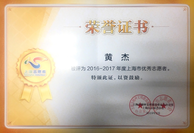 日前,经上海市精神文明建设委员会评审,我校团委唐帆、外国语学院黄杰获“上海市优秀志愿者”称号。
