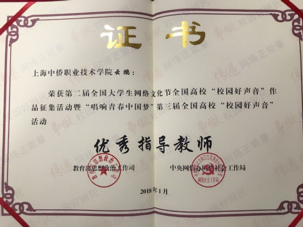 近日,教育部思政工作司,中央网信办社会工作局表彰了第二届全国大学生网络文化节暨全国高校“校园好声音”活动各项奖项。我校荣获优秀组织奖,唐帆老师、云鹏老师荣获优秀指导教师。