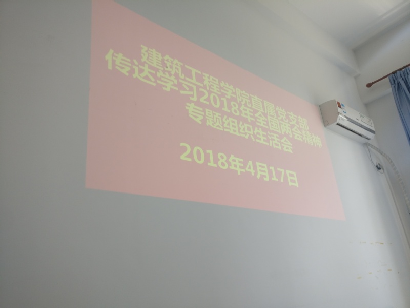 2018年4月17日,建筑工程学院直属党支部召开专题组织生活会传达学习十三届全国人大一次会议和全国政协十三届一次会议精神,会议由建筑工程学院直属党支部副书记江雪标老师主持。