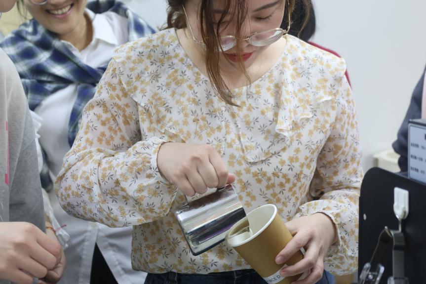 活动以“咖啡拉花与彩色漆扇制作”为主题。咖啡师向老师们详细讲解了咖啡研磨的要领与拉花的技巧,并通过实际操作,让老师们亲手体验了咖啡拉花的乐趣,为他们的教学工作增添了一抹别样的色彩。
