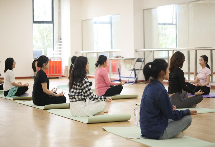 瑜伽活动现场,唐老师为老师们简单介绍了瑜伽的基本知识和功效,随后带领老师们进行了一系列的瑜伽体式练习。老师们在教练的指导下,专注于每一个动作,呼吸平稳,身心逐渐放松。