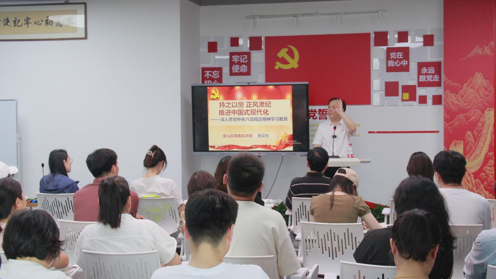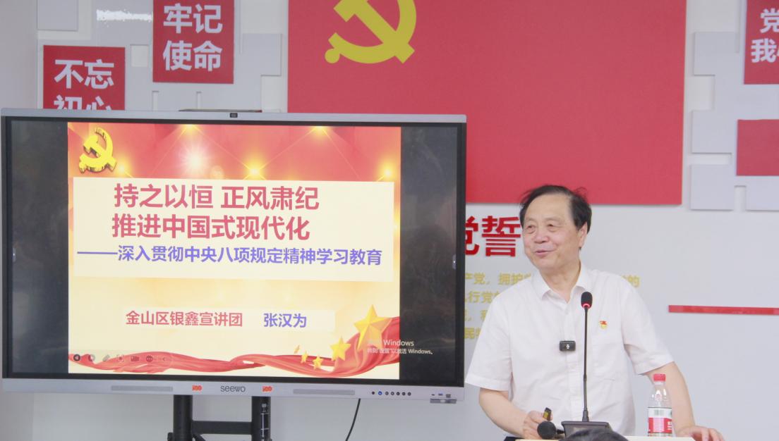 为深入贯彻中央八项规定精神,推动新任及年轻干部以优良作风投身中国式现代化建设,上海中侨职业技术大学于6月19日下午1点在 1-404举办 “持之以恒,正风肃纪,推进中国式现代化”专题讲座。学校新任和年轻干部参加本次培训,讲座特邀金山区委党校原常务副校长、金山区银鑫宣讲团张汉为老师,系统解读新时代作风建设的核心要求与实践路径。