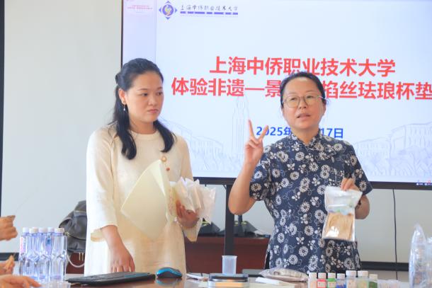 10月17日下午,上海中侨职业技术大学于图文楼418举办了体验非遗系列的第4期活动——制作景泰蓝掐丝珐琅杯垫,体验非遗传统手工艺的魅力。
