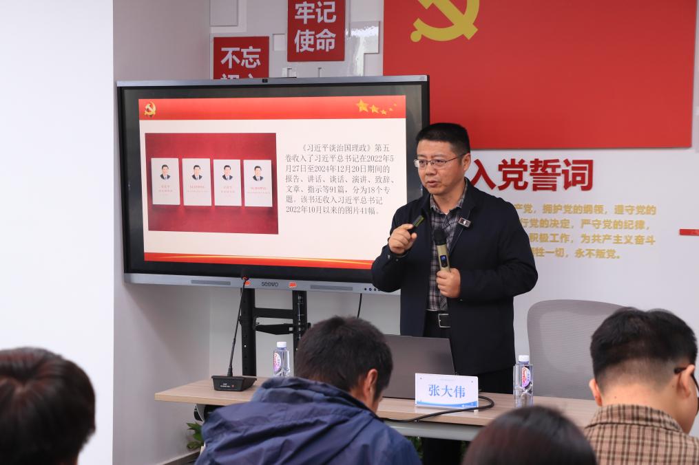 讲座中,张大伟从深刻背景与重大意义、逻辑框架与核心内容、基本要求与具体方法三个维度,系统解读《习近平谈治国理政》第五卷。他结合世情、国情、民情、党情,阐释了著作出版的时代价值,从战略目标、总体布局、配套保障和根本保证四个方面详细梳理著作的逻辑框架,重点解读“中国式现代化”“改革开放”“两个结合”等核心要义,并针对党员干部提出“提高政治站位、心怀‘国之大者’、增强经济意识、保持赶考心态”的学习要求,分享“构建系统学习体系、注重学以致用”的实践方法。